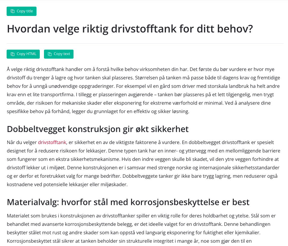 Artikel brødtekst som kan kopieres enten "visuelt" eller som HTML